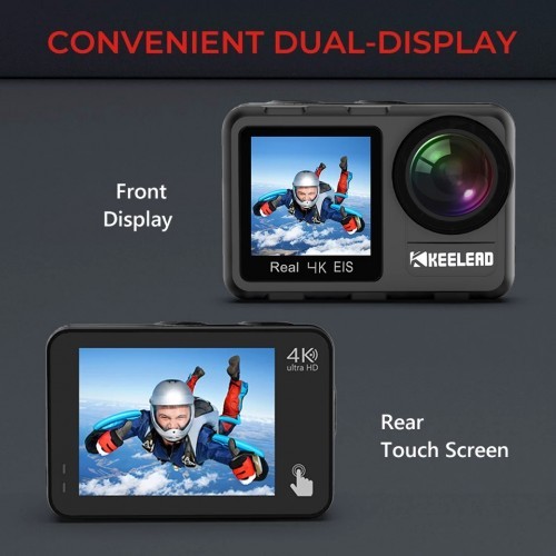 Keelead Action Camera K80 4K Dual Screen WiFi 5m Body Waterproof 60FPS 20MP 2.0 Touch LCD EIS Remote Control 4X Zoom Sports Cam
